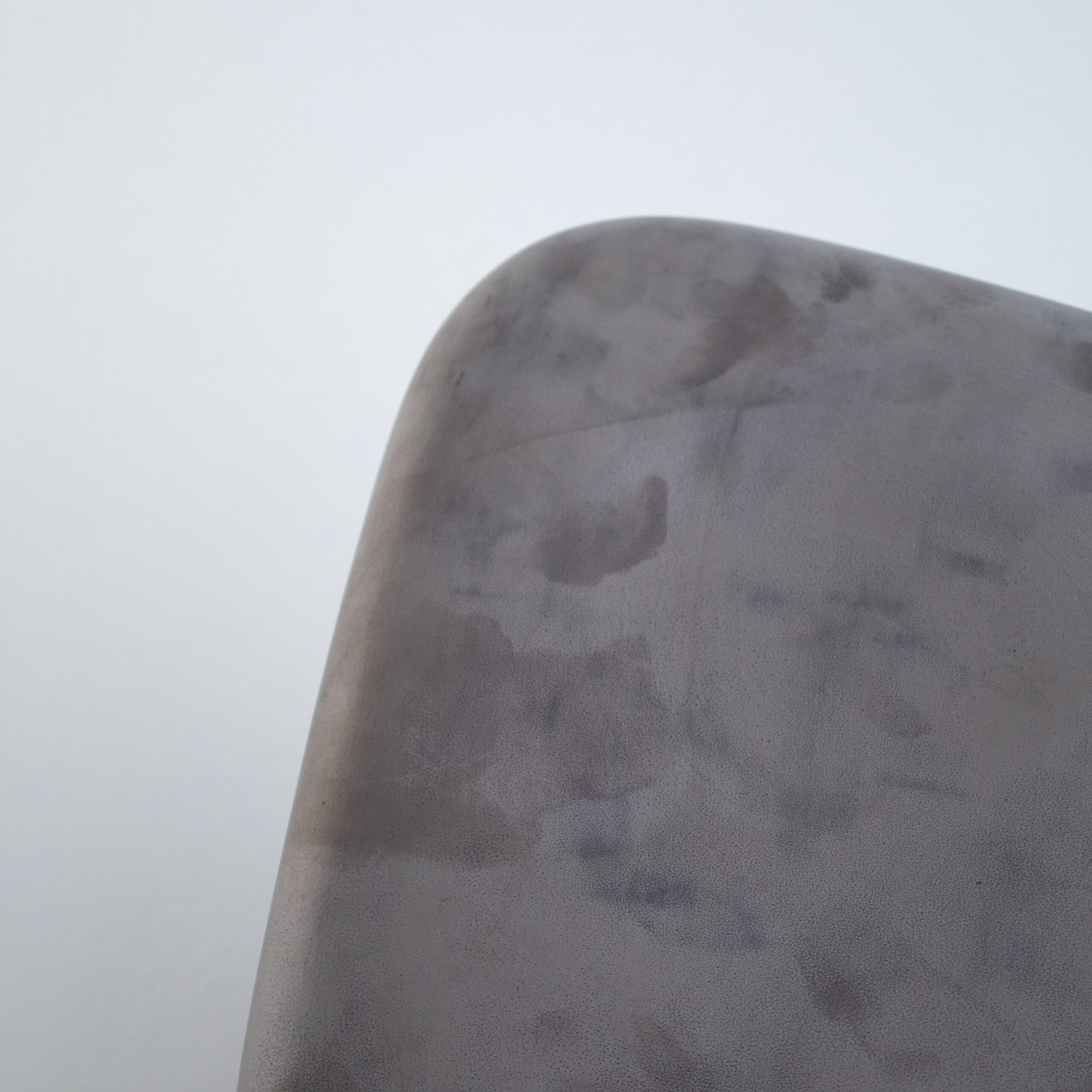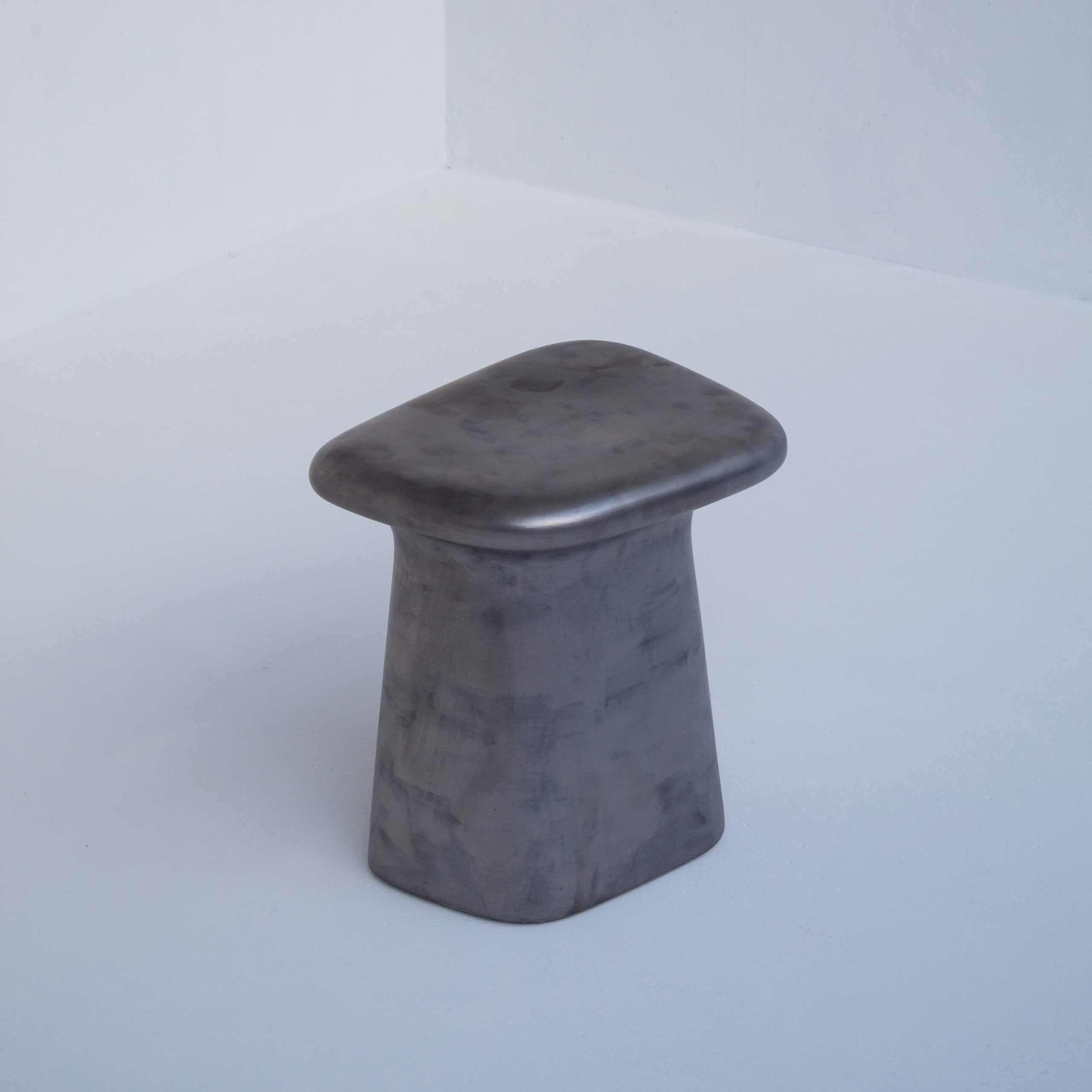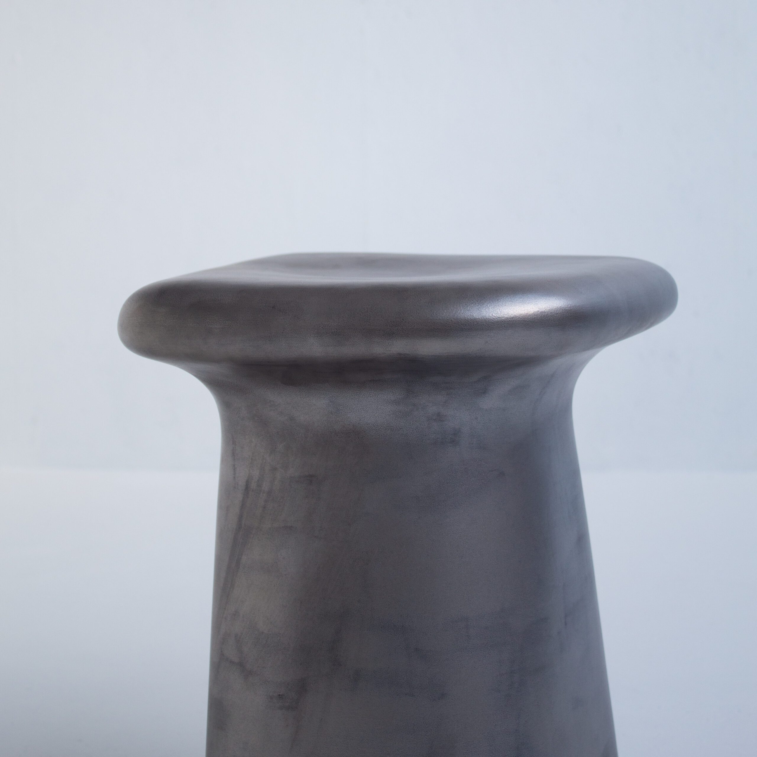 The maker formed the stool from cast aluminum, giving it a smooth surface and subtle variations in tone. A matte grey finish softens the material and adds depth without shine. This finish highlights the organic silhouette and reinforces its architectural character. As a aluminum stool, it works well as extra seating, a side table, or a decorative object.